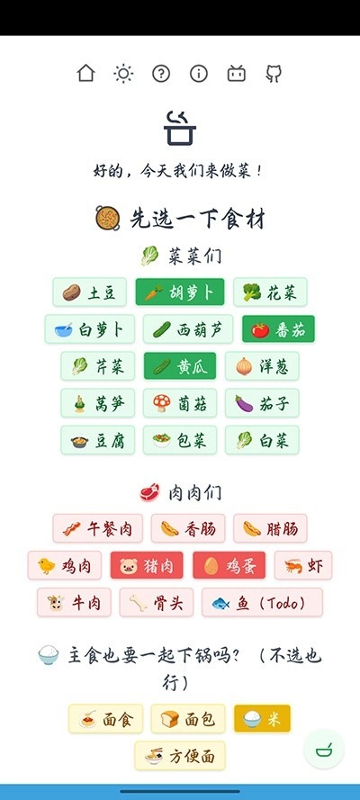 2、选择吃什么界面