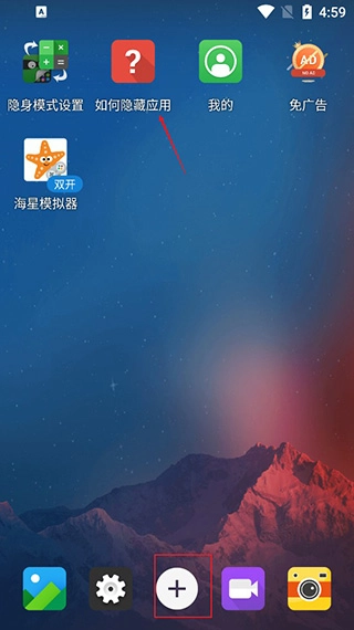1、启动软件后,可点击界面下方的“+”按钮,也能点击查看隐藏应用的方法。