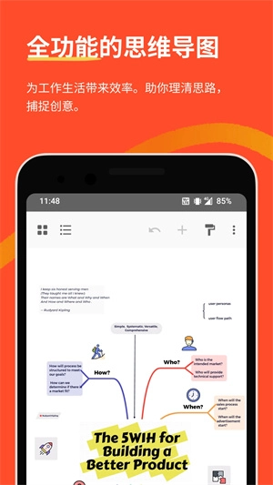 XMind手机版是一款功能丰富的实用软件,能助力用户梳理思路、提升思维质量,还为用户提供多项支持服务,允许用户对插件配件进行自定义修改,充分展现了软件的强大性能,让用户通过多种途径获得愉悦的使用体验。