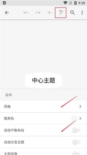 2、系统会给你一个最简单的一个主题,点击红色方框内的标识,将会出现更换风格、填充色等设置。