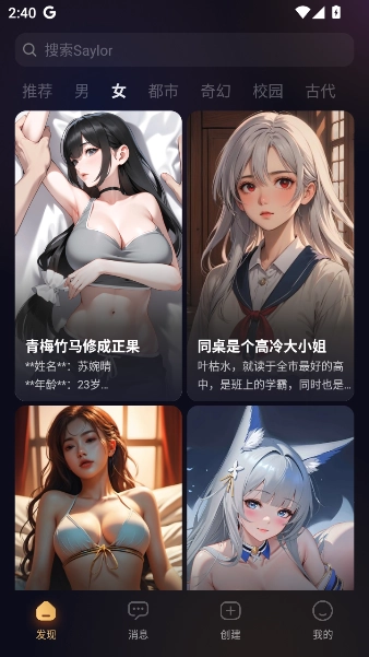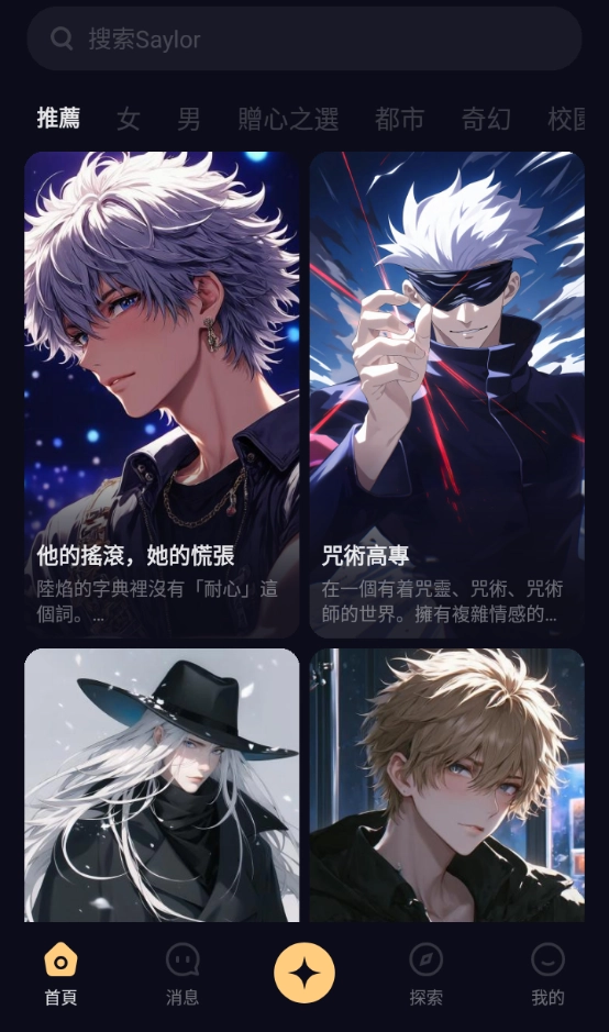 2.你可以浏览首页推荐的类型,或者直接用关键词搜索你想聊的话题或类型。