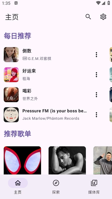 3、后进入媒体库,用户可随时收听喜欢的歌曲,管理个人收藏的音乐资源。