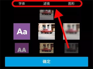 点击模板,会看到“字体”、“滤镜”以及“图形”三个选项,还是老方法,大家自己去点击看看。在这里不得不提一下,手机版 Quik 软件没有“调色”功能,只有“滤镜”选项,而且说实话,这些“滤镜”我个人不是很喜欢,所以绝大多数情况,我是直出色彩。