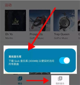 当然,你也可以添加自己的音乐,但是这个步骤就相对来说比较麻烦,你需要先将音乐在电脑上好,使用 iTunes/iTools 等软件将在电脑上的音乐导入到手机本地,然后再添加进手机版 Quik 软件。