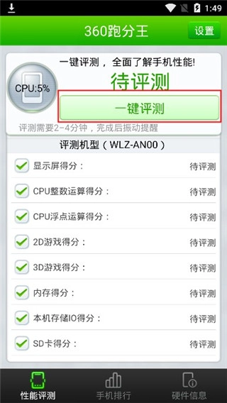 1、一键跑分,硬件性能得分一目了然