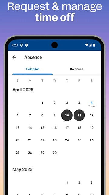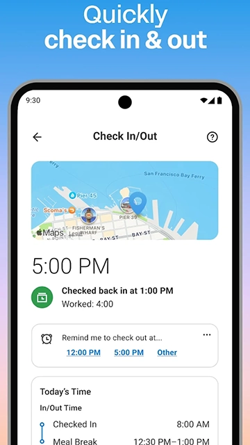 • 快速查看薪资、查看或申请短期休假、工作打卡、提交工时表以及提交费用报销单。