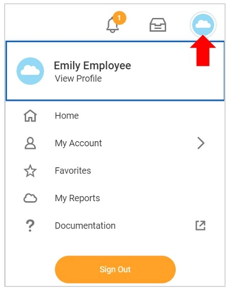 1、在Workday主页上点击云朵或头像照片图标。