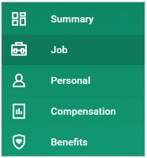 4、档案左侧有一系列选项卡,包含有关您的工作、联系方式、薪酬、职业生涯和绩效的详细信息。一些选项卡可以编辑信息。点击选项卡查看更多信息。