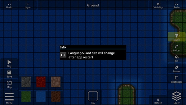 编辑工具:铅笔工具,图章,填充,画笔,矩形,复制粘贴和地形工具-瓷砖旋转和翻转-撤消和重做(目前仅适用于图块映射)