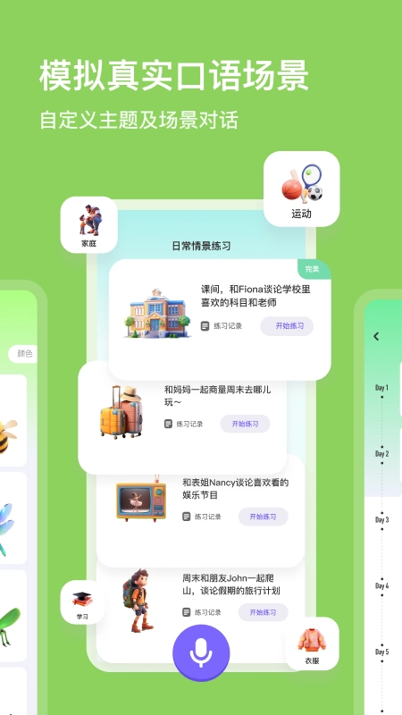 4.提供丰富的情景对话练习,可以根据自己的兴趣和需求选择喜欢的情景进行对话交流