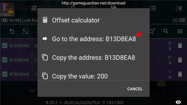 10、此时,我们可以完全看到金币数值的地址,点击此地址。