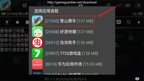 5、点击GG悬浮窗,选择登山赛车