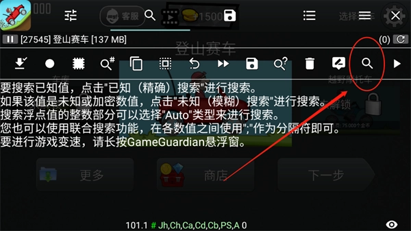 7、或者可以选择Auto 让GG 自己搜寻游戏内可以修改的参数