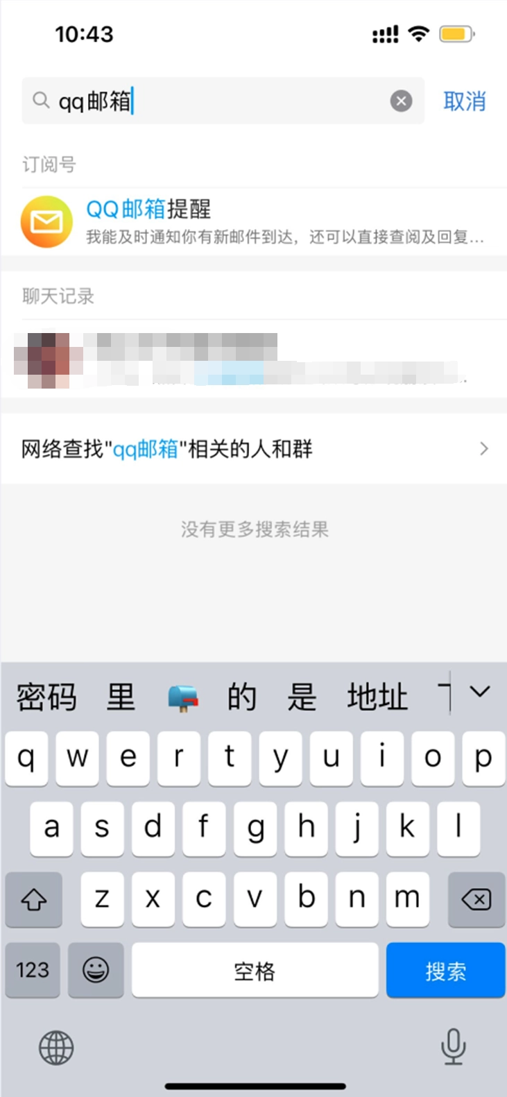 3.在QQ内搜索QQ邮箱,找到QQ邮箱提醒订阅号