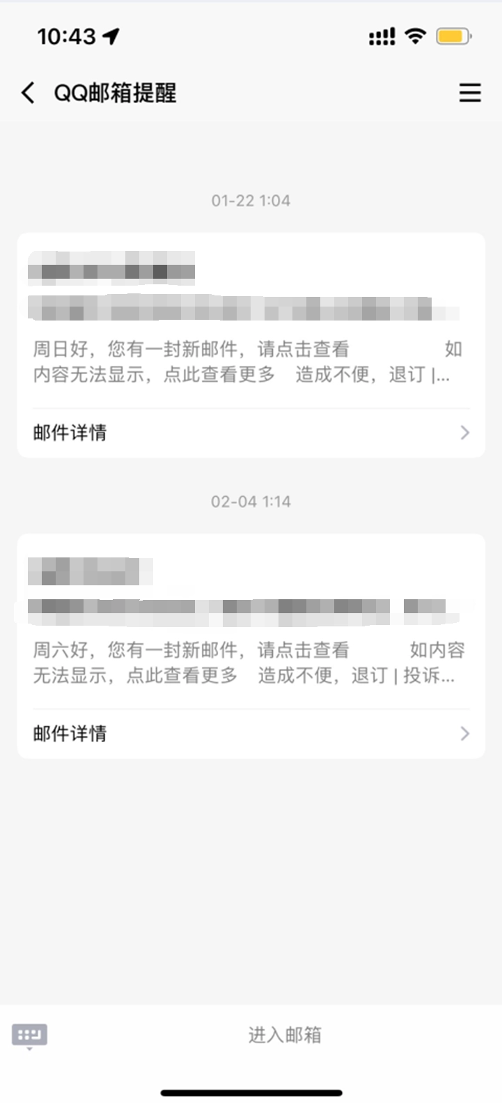 5.关注后即可接收邮箱消息(注意,仅能同步本QQ注册的QQ邮箱消息)