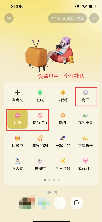 - 在线状态自由定义,此刻情绪随心表达不设限;