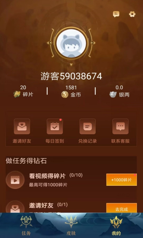 2、王者皮肤软件里各种任务每天都会更新,完成后可以获得相应的免费奖励。