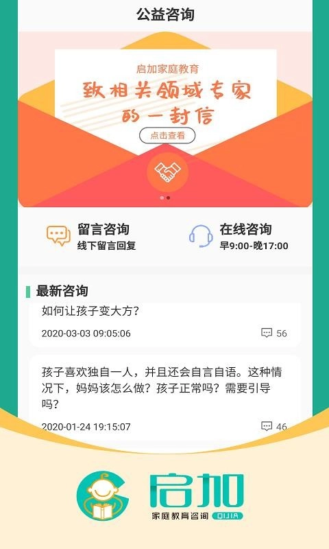 1、启加家庭教育可借助本软件查询实时教育信息,从而获取最新的实时资讯。