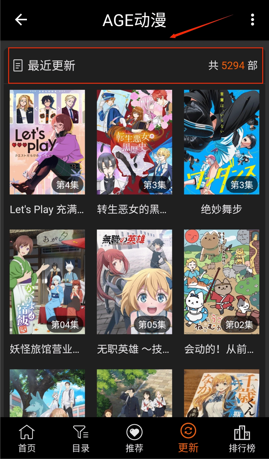 4、更新页面:会推送最近更新的动漫;