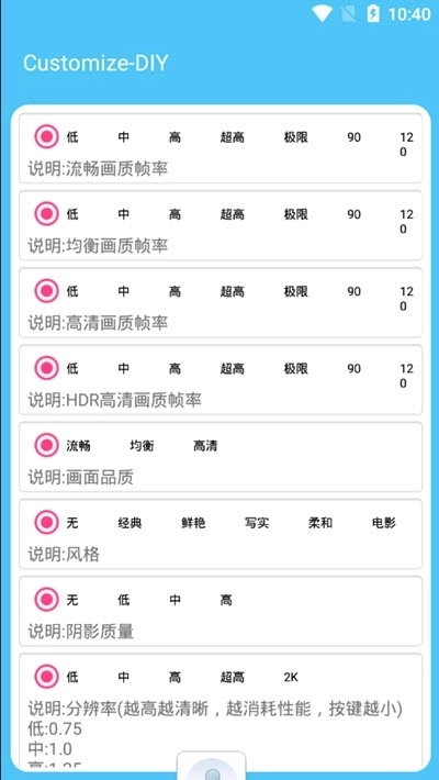 《骁龙画质助手》这款软件具备出色的画质提升功能,能帮助用户优化画面效果,同时让操作更加流畅。用户可以自行调整画质参数,从而获得更流畅、更畅快的游戏体验。它是一款非常实用的免费游戏辅助工具,能够助力用户打造更贴合自身需求的画质优化方案。