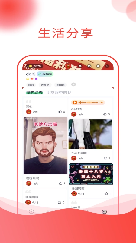 3、支持生活分享,你可以分享你的日常趣事,展现你的魅力的时候到了,快来试试吧!
