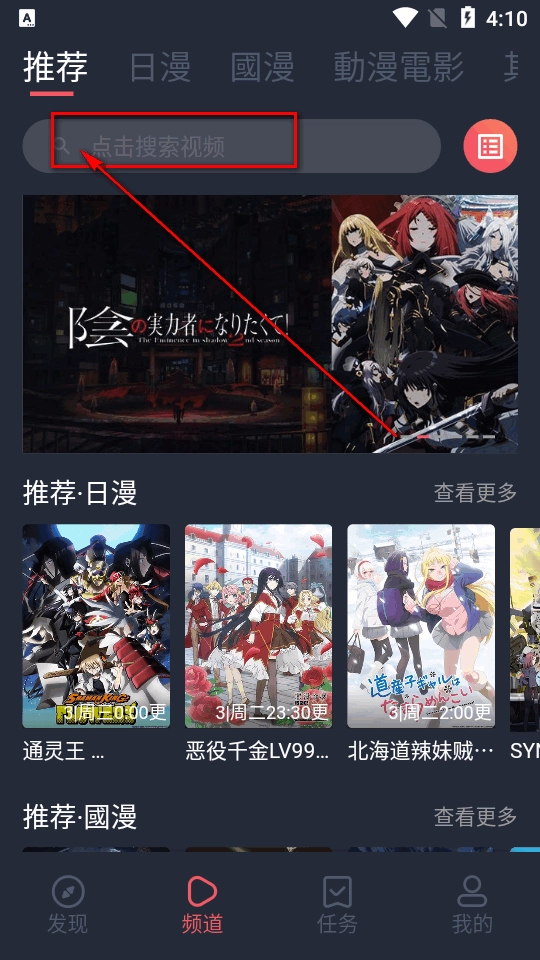 1、首先安装好软件打开,在搜索框搜“动漫”。