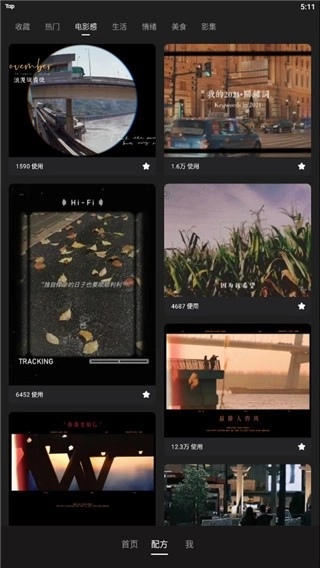 4、在配方里面点击电影感,使用里面的模板可以让你也能拍出好莱坞电影大片的既视感。