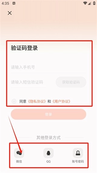 3、跳转到软件登录页面后,用户可以选择使用手机号和密码进行登录,或者第三方微信账号。