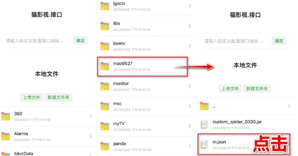 找到【mao9527】点击【m.json】,再点击本机地址后面的【使用】即可