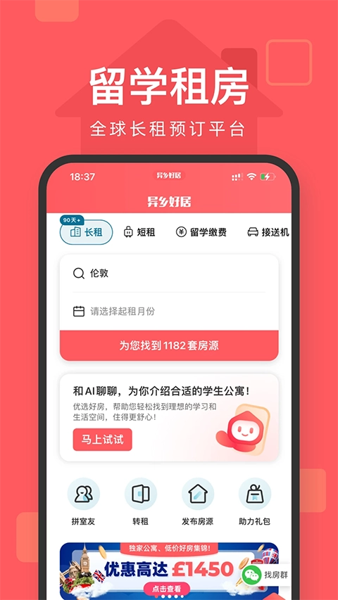 异乡好居是一个专门面向海外中国留学生的跨国租房服务平台,核心目标是为分散在全球各地的中国留学生提供安全且值得信赖的住宿选择。平台汇集了多个国家和地区的优质房源,包含学生公寓、私人住宅、短租房间等不同类型的住宿产品,借助智能定位功能和个性化筛选工具,能让用户迅速找到契合自身需求的居住场所。同时,平台会对所有房源的真实性进行严格核查,并配备本地化的客服团队提供支持,全力保障留学生在异国能顺利找到心仪的住处,安心完成学业。