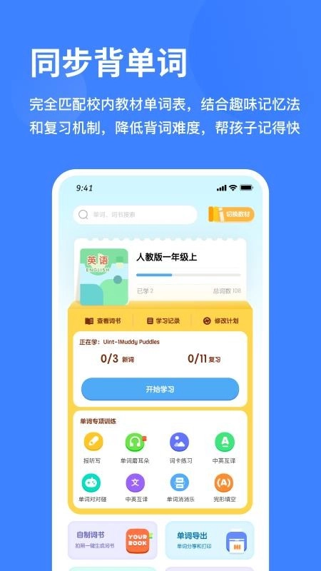 支持用户让孩子来实时背单词,轻松降低背词难度,便捷记忆更多的单词。