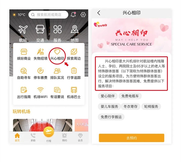 进入"兴心相印",提交相关信息可预约免费爱心服务