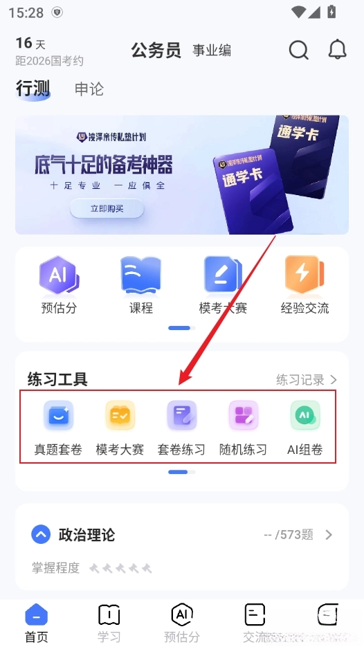 一站式学习服务:集刷题练习、课程学习、模考大赛等多种功能于一体,满足学员多样化学习需求,无需切换多个平台。