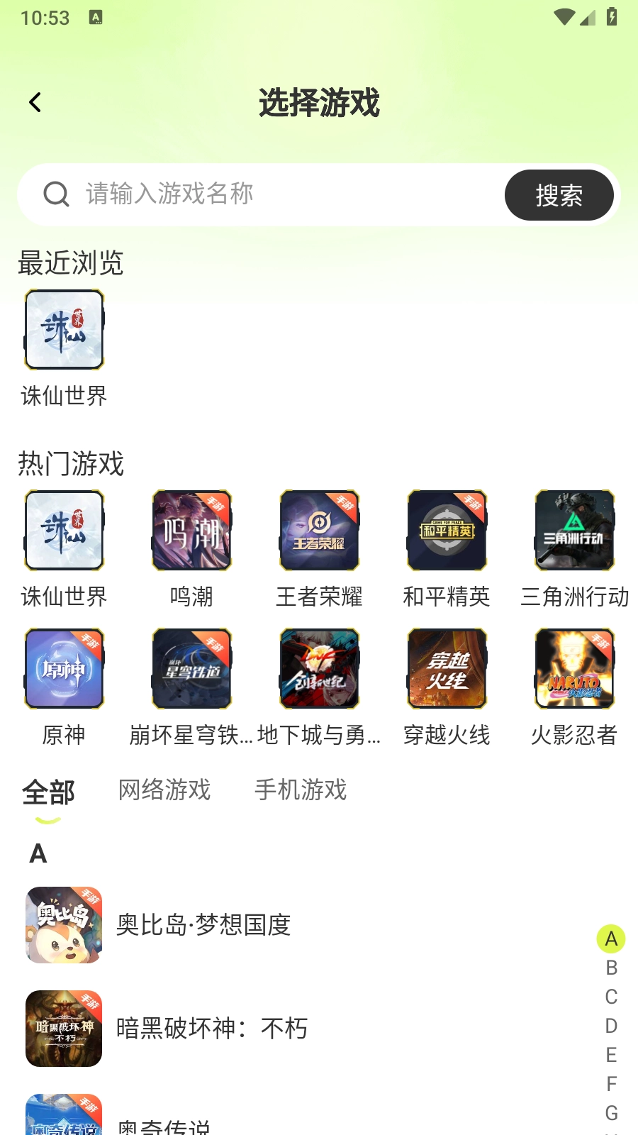 3.App支持关键字搜索功能,在文本框输入游戏名称进行搜索