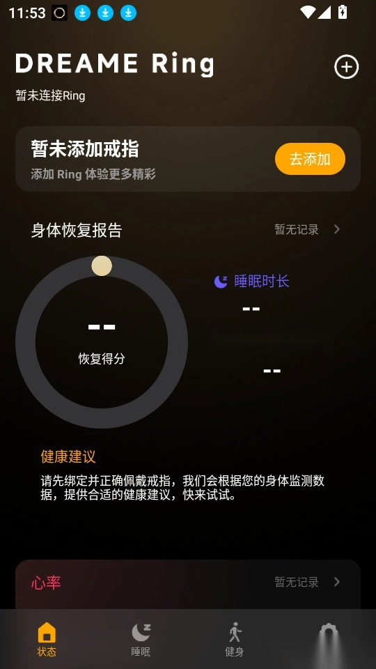 软件提供了线上的智能戒指,方便用户轻松连接戒指设备,便捷绑定添加设备。