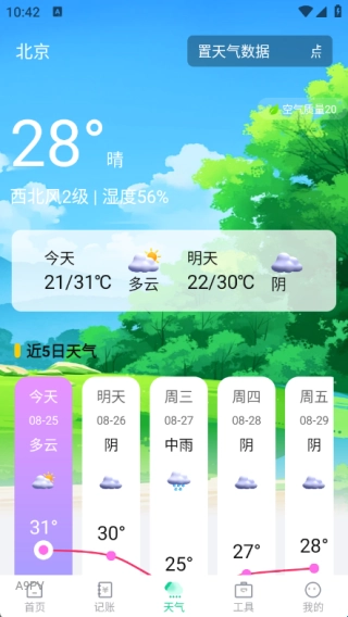 3、在天气页面中可以了解各类天气资源,及时的了解最新的天气的各类信息资源;