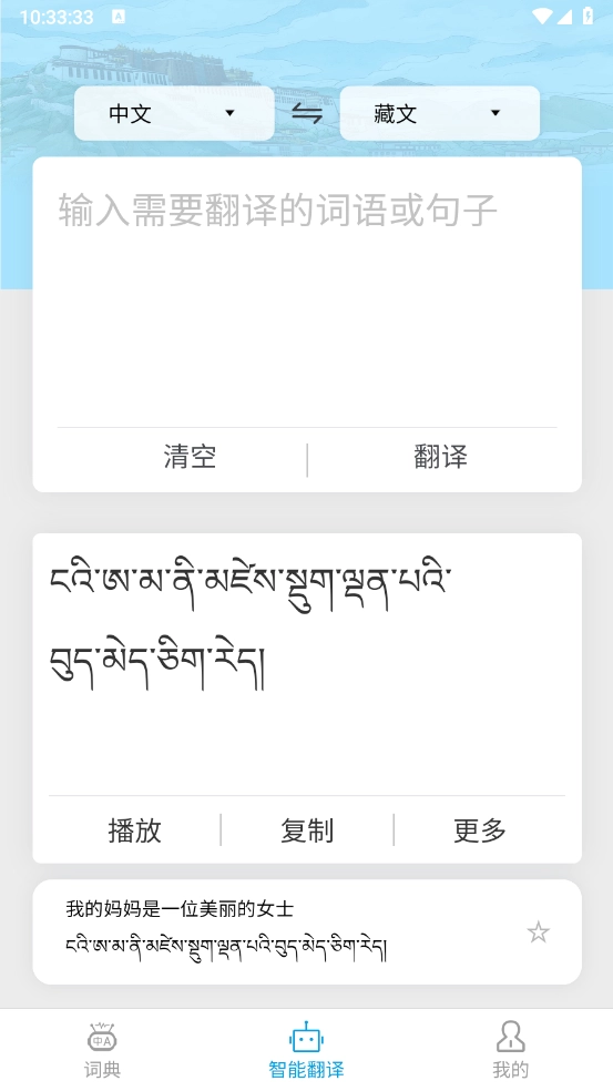 支持语音、文字和拍照等多种翻译方式,无论是去西藏旅游还是工作都非常方便。