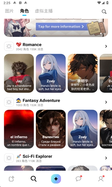 这款软件了丰富多样的资源可供探索,同时提供了多种类型的AI角色供用户挑选,每一种都能为用户带来出色的使用体验。此外,用户还能在软件中自行设计专属角色。感兴趣的用户不妨亲自体验一番。