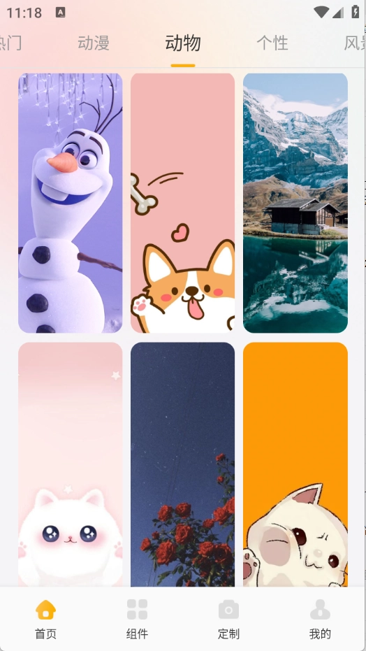 2、来到首页之后可以看到很多的壁纸资源类型,动物、动漫以及风景等类型都有。