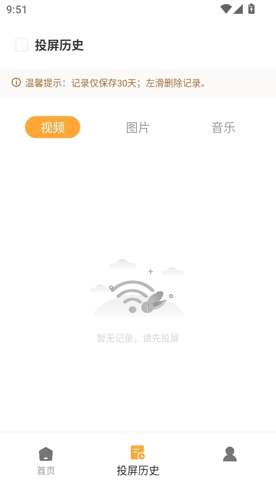 3.在软件首页界面找到底部“投屏历史”功能按键点击进入