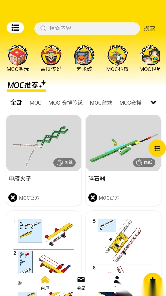 MOC最新版本是一款汇集海量积木搭建图纸资源的软件,用户可在其中自由发布自己设计的各类积木搭建图纸,并以3D形式全方位展示这些图纸,让大家能更直观地查看每一处细节;同时,软件支持用户随时定制专属赛博人、MOC音箱盆栽或MOC方仔,还能自定义积木画,轻松打造独家创作的积木画作品;此外,它还支持通过蓝牙连接积木设备,用户可借助软件随意操控设备进行积木创作,体验人机互动的创作方式,让积木作品的创作更智能便捷。有需要的用户不妨来MOC体验一番!