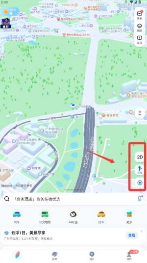 3、点击地图右上角切换按钮,可以在矩形地图、卫星图和街景之间自由查看。