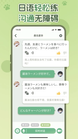 1、口语练习场景:涵盖日语口语的各类应用场景,像餐厅点餐、街头问路、商务场合洽谈等,用户能够进行对话模拟,系统则会对其表达的流畅程度与准确程度展开智能评估。