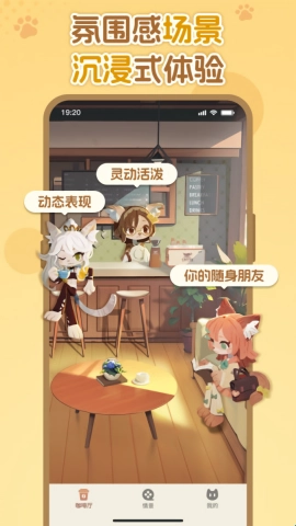 2、咖啡厅互动学习:点击下方的咖啡厅,能够和三位有趣的卡通妹子进行日常口语对话,还能查看她们的性格、喜好和年龄等信息。