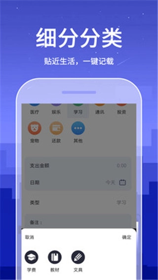 4.账单预算,实时监控您的支出,并在超支时自动提醒。