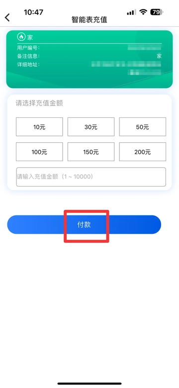 ⑨ 输入您要充值的气量(卡表)