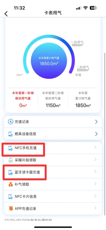 ⑦ 卡表用选择“NFC/蓝牙读卡器充值”