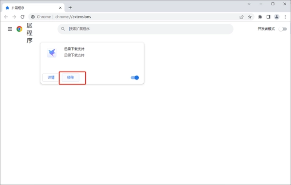 点击浏览器右上角菜单---更多工具---扩展程序,选择\\"移除\\"迅雷支持即可