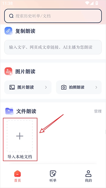 语音朗读支持多种形式:你可以导入文档来听,复制网页内容来听,直接输入文字来听,还能上传图片来听,各种格式都能轻松实现语音朗读。