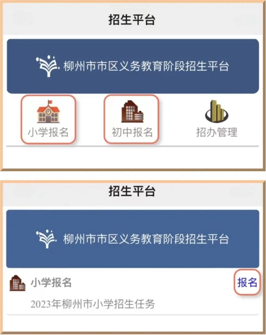 2.选择相对应的“小学报名”或者“初中报名”。